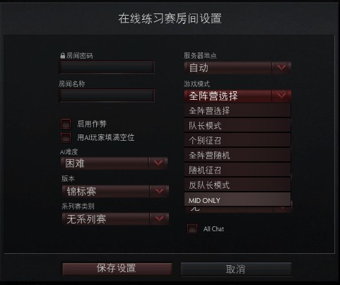 - 现在私人房间加入了中单游戏模式(其他分路将不出兵,允许双方选择相同英雄)