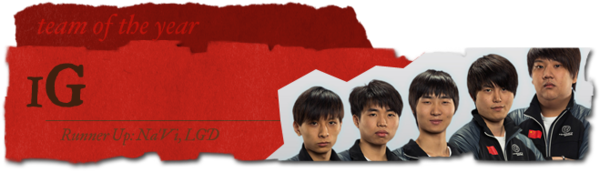 年度战队——iG战队。其次是Na'Vi和LGD战队。