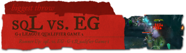 最孤注一掷的比赛,G-1联赛资格赛SQL vs EG前两场。连续2局都是拼大后期、基地互换。