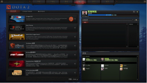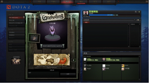 游戏——拉上好友一起战个痛吧!在这里,玩家能够自动匹配对手进行游戏,当然,拉上队友一起开黑也是不错的选择。这里还专门设置了寻找合作对抗电脑比赛!这于尝试新英雄的玩家是个不错的选择。每当特殊的节日时,还会开发一些特殊的游戏模式,比如万圣节的抢糖果,冰雪节的贪魔都增加了游戏的乐趣。另外在最下面我们可以看到3个尚未开放的任务,教程、任务、和师傅一起玩,这个功能非常适合刚接触Dota2的新手,师徒功能也值得期待。