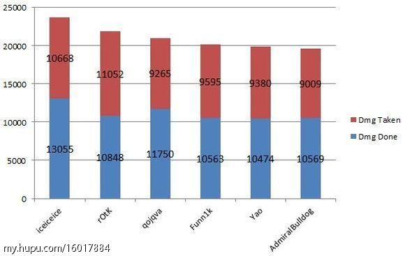 三冰真心威武,制造伤害不但碾压其他任何3号位,甚至还超过了Burning和Mushi一大截,让人不得不叹服。布狗是一刷到底,先知那小脆身板也扛不住多少伤害,倒数是他应得的。当然了,如果统计对塔的伤害,我相信布狗一定在前列。