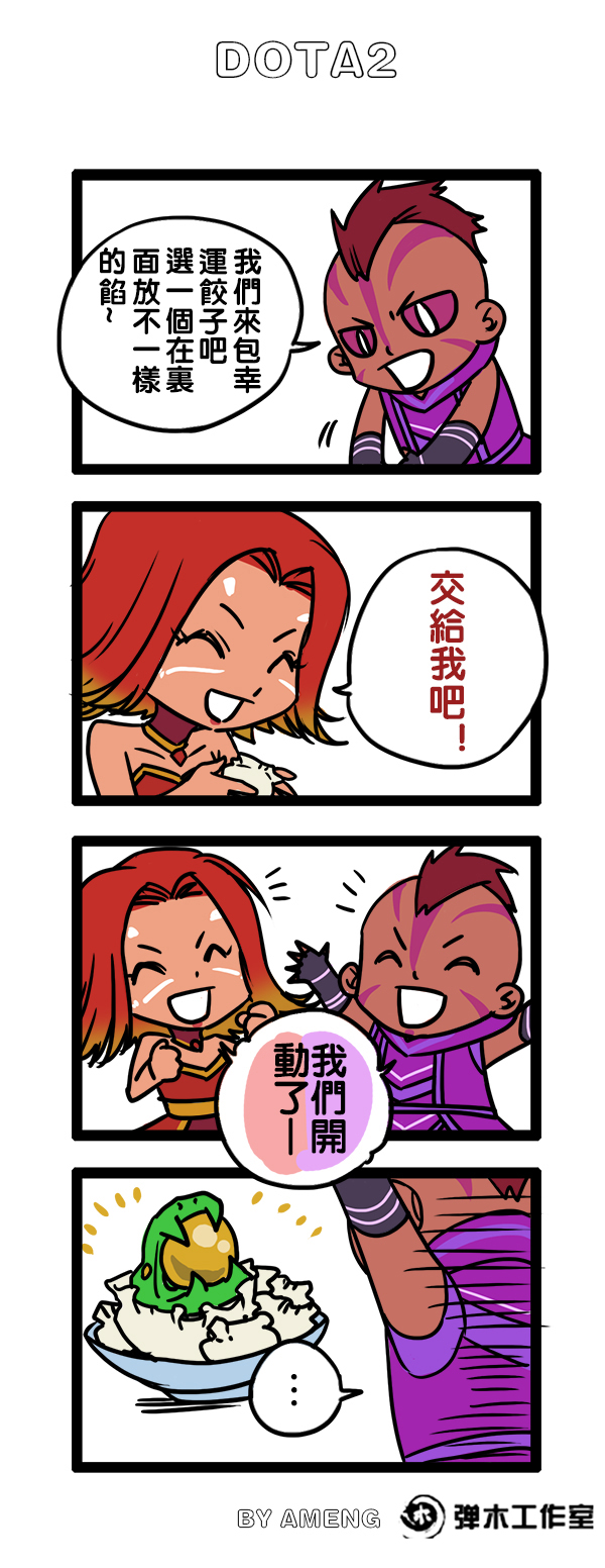 马年春节即将来临,DOTA2将在节日期间奉上“芳晓”模式版本的重大更新,献上多重惊喜好礼,祝福大家度过一个愉快的春节。同时,DOTA2中一群擅长丹青的玩家也用自己手里的画笔为所有DotAer呈现了一份欢乐大礼。DOTA2明星选手、解说纷纷化身为卡通英雄形象幽默拜年;游戏中的英雄和信使也不甘寂寞,想要以各种方式来度过这个美好的节日,但过程中却是笑料百出。DOTA2春节漫画大礼,让我们一起欣赏吧!
