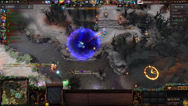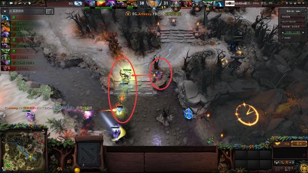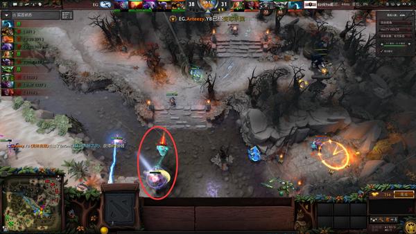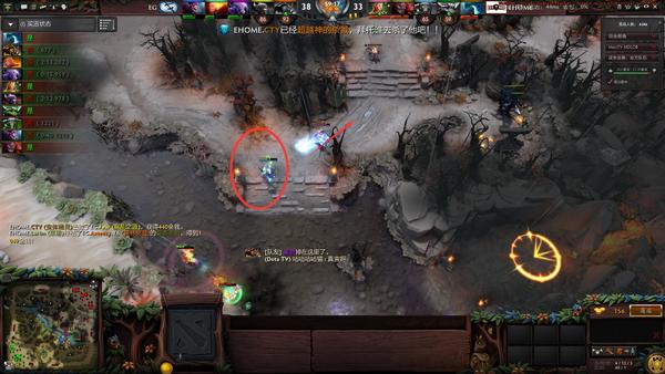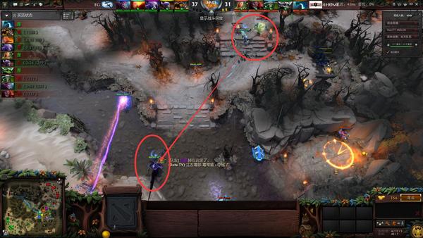 夜宴河道位置,一直在ROSHAN坑里藏着的国土莱恩迅速跳出来到ROTZ侧面,羊了宇宙哥虚空