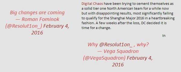 TI5国际邀请赛赛EG夺冠后,功臣2000哥被踢,组建了DC战队意图复仇。然而最近在各个大赛上的比赛并不令他们满意,为了增强自身的竞争力引入Resolution是个非常不错的选择。Empire战队失去大将后下一位引进谁还暂时没有公布。