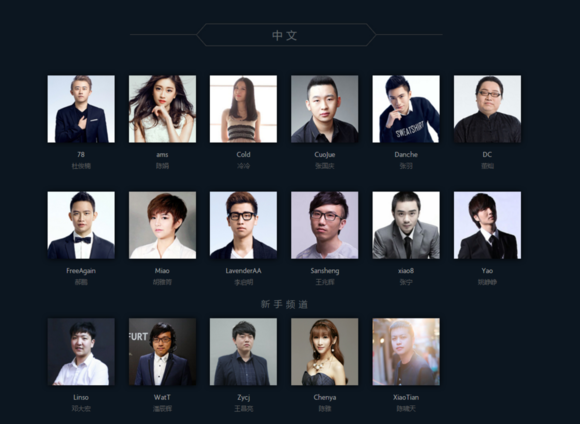 可以看到中文解说里面 除了之前已经公布的 也加入了新手频道的解说 其中包括啸天@傲世★啸天 好奇啸天还上贴吧吗 HOHO: