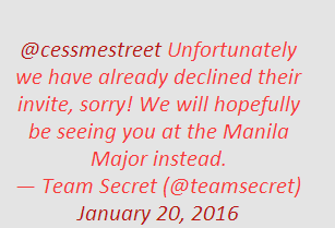 Secret回马枪 确认参加ESL马尼拉站比赛
