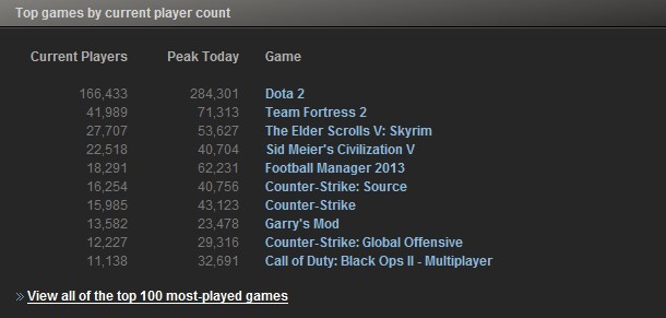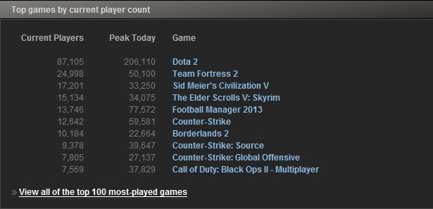 在一个月前游久网曾经为您报道了DOTA2一年用户暴增,创STEAM最高在线的新闻,可能有玩家还记得,那时我们提供的截图显示,DOTA2的最高同时在线人数是20万出头,这已经是STEAM平台历史上最高同时在线的记录,超过了第2,3,4,5名热门游戏的总和。