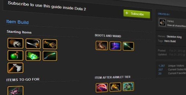 现在访问Steam社区里的指南页面可以查看所有喜爱英雄的详细攻略。您也可以订阅英雄攻略,这可以在游戏内应用,指导该升级什么技能(以及该什么时候),还有与您的需求最为契合的装备。