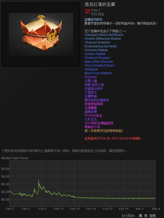 莲花宝箱的价格一直在掉,而最近趋于稳定,变成1美分是迟早的事