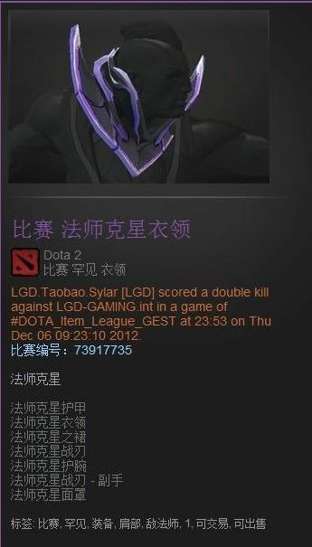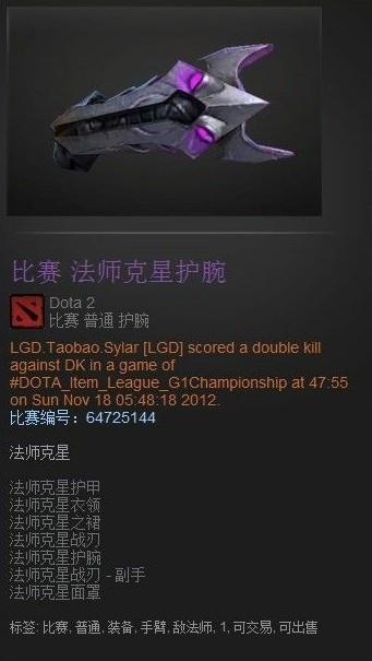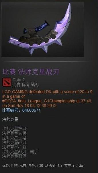 G1联赛总决赛的时候,LGD赢DK那场全场唯一掉落的稀有联赛饰品