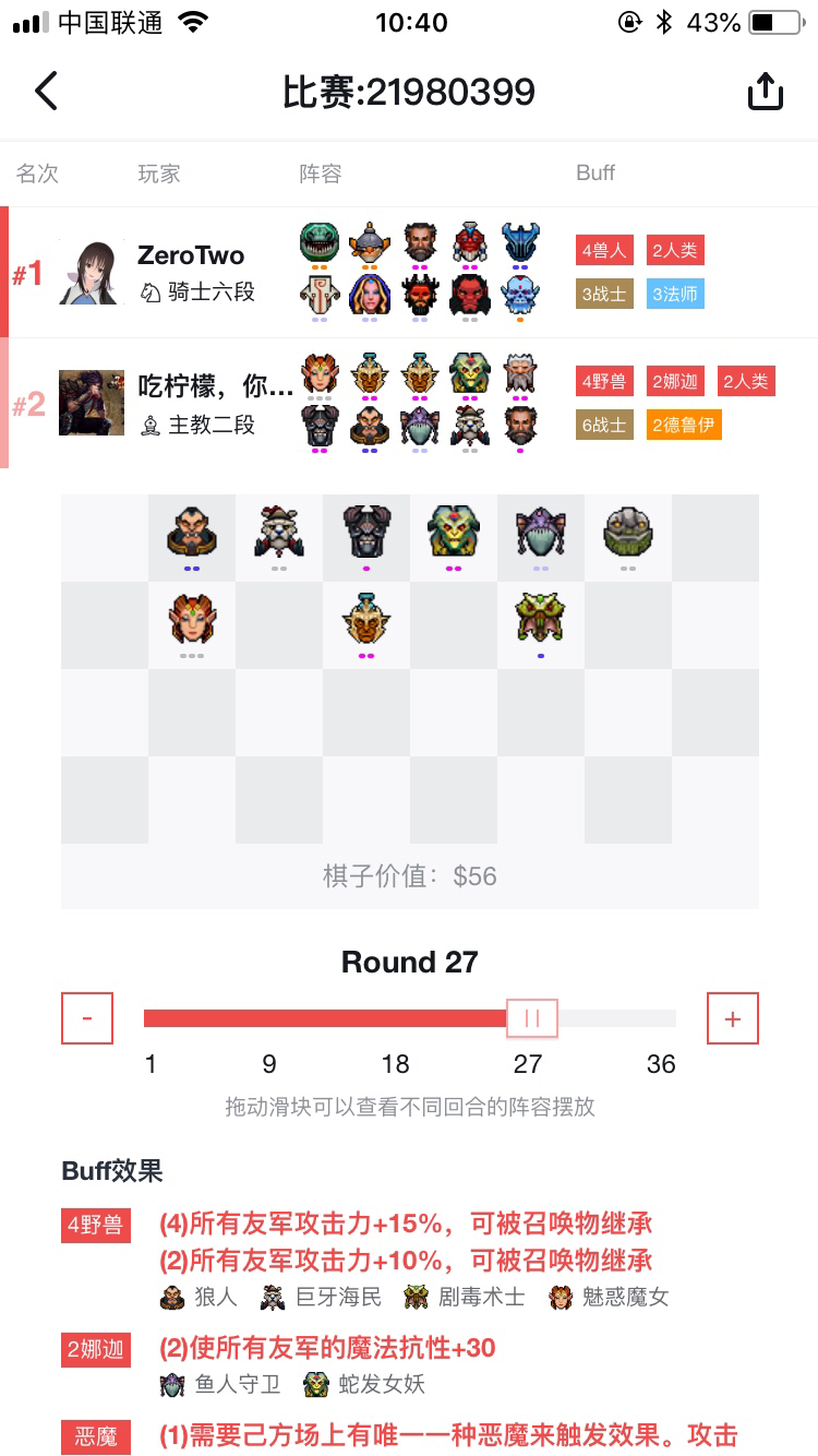 可以看到我这把已经很卡手了,没有船长没有大德,还好有二星大娜迦撑撑场面。