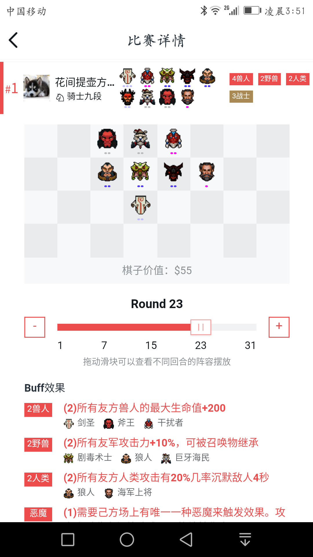 可以看到,搭配很灵活,妈妈再也不怕我为了某张紫卡、橙卡而卡死自己了!不过话说回来!如果最终决赛前三有强力法师,萨尔还是很关键的。而且后期还有你的三星卡也很关键!剑圣斧王海民!经济好的话三星剧毒狼人也不是梦!其他的就别想了,替补格子不够用!