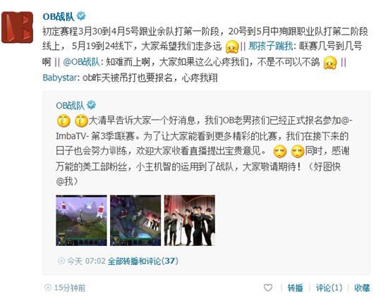 昨日I联赛第三赛季已经启动报名,今天早晨,OB战队官博发出通告,表示已经报名参加了I联赛第三赛季。