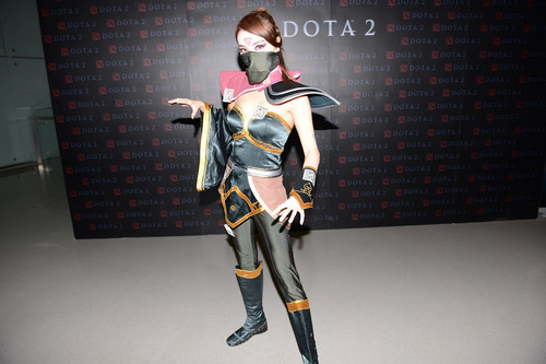 另外两位出色美女Coser装扮成的痛苦女王和圣堂刺客亦是将两位英雄在游戏中的冷艳杀伐气质完美展现。Dota2中稍显魅惑冷艳的痛苦女王和巾帼豪情般冷艳的圣堂刺客都擅长收割敌人灵魂的杀手,就如同带刺的玫瑰一般,可远观却不可亵玩,但别样的气质却更加受到观众青睐。
