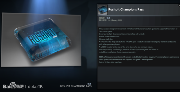 实际上所有RPG都是可以免费玩的,但是现在你花一刀充值这个Roshpit Champion(英雄试炼之肉山谷)