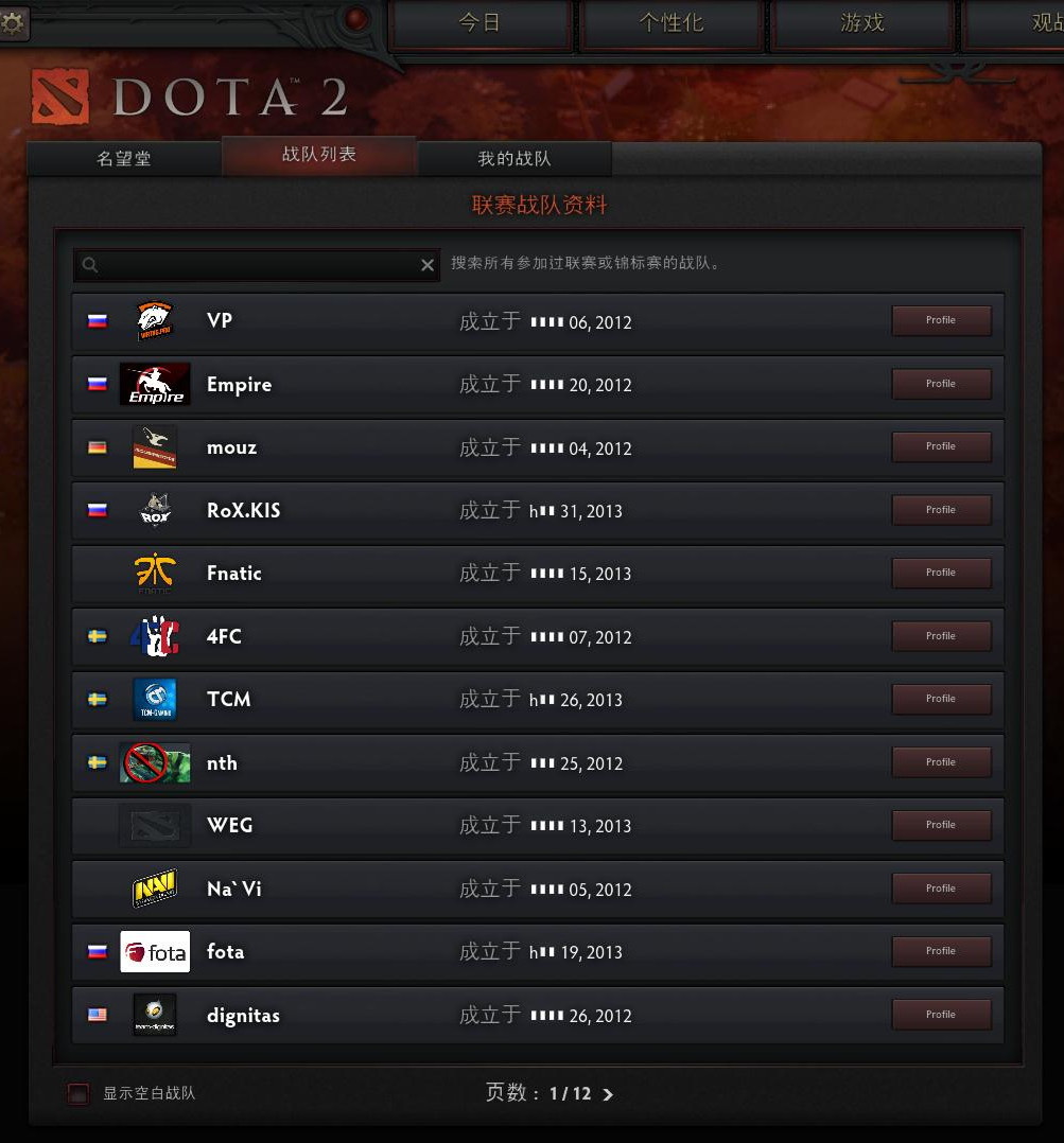 战队列表:在这里可以找到所有有效的dota2战队以及队员;
