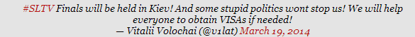 “SLTV线下联赛将如期在基辅举行,我们不会被这些**的“政策”所影响!如果需要的话,我们会帮选手解决签证问题!”