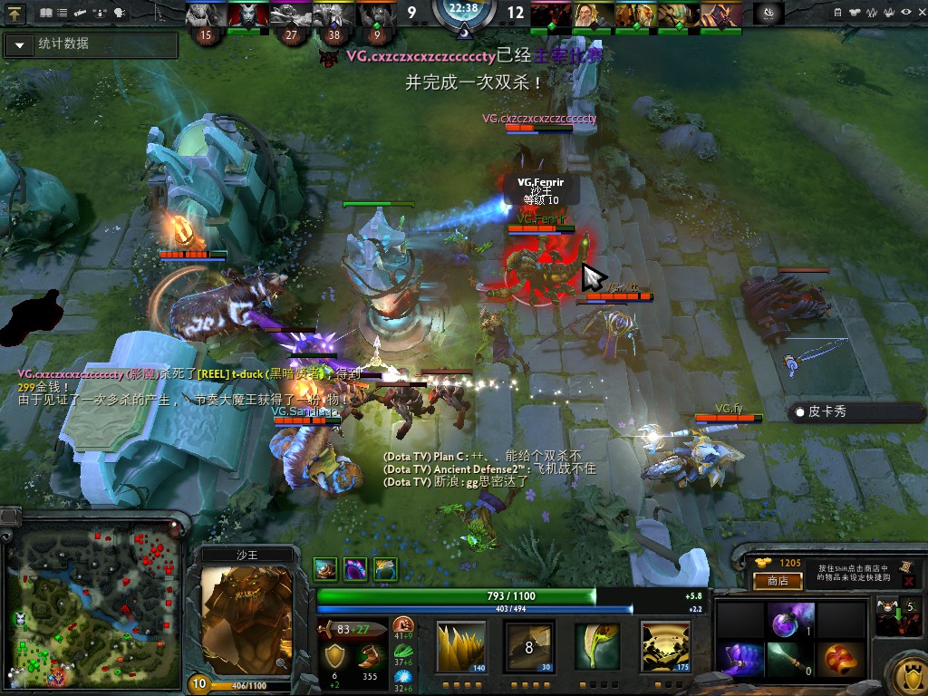 22分钟黑暗贤者面对VG强势推进选择破塔瞬间强打一波,虽然技能衔接上堪称完美但是爆发不足导致被VG