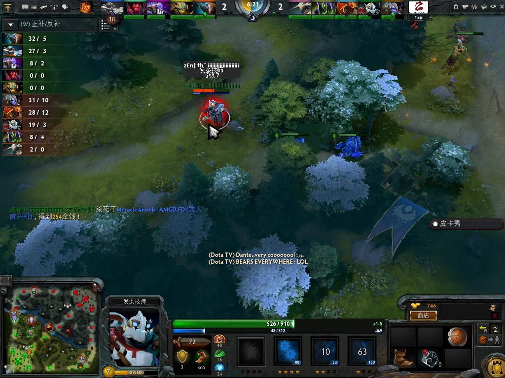 17分钟夜魇选择越1塔强打一波团战,发条早早就埋伏在天辉神秘商店处这时候路过的毒狗被发条先手3冰把毒狗框到了外围让队友输出。但是这是对放的人全部支援到位利用BKB飞机打了对方一个小团灭搬回一点局势。