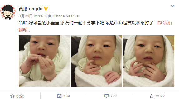 龙神晒儿子:宝宝好可爱 DOTA没状态打了