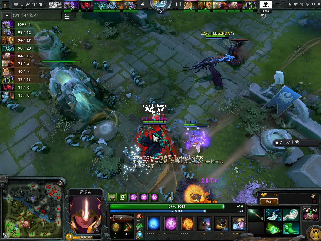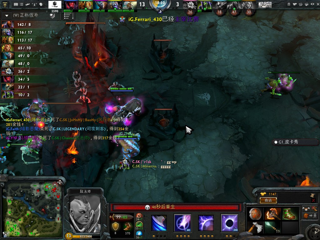 21分钟IG带盾一波直取C.SK的高地,,C.SK毫无招架余地被破中路高地。