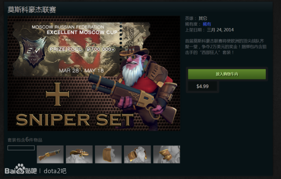 莫斯科豪杰联赛 这个门票带矮人套装 5部件 不过识别度跟另外一套有点像 商店卖4.99美刀