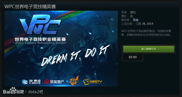 Dota2VO技艺联赛第1赛季 门票 赠送萨满套装(5部件) 一个HUD和一个载入图 商店卖4.99美刀