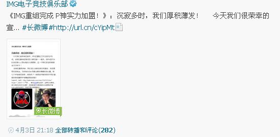 4月3日,IMG俱乐部发表一则长微博,宣告IMG重组完成,PIS复出加盟!