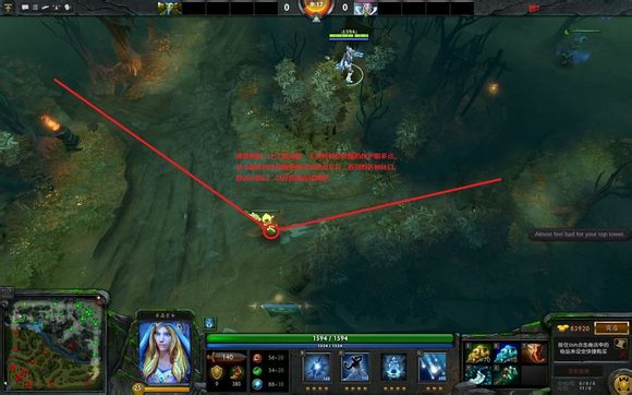 大家可以从小地图明显看到这个线眼的亮度是刚好到天辉1塔前的。