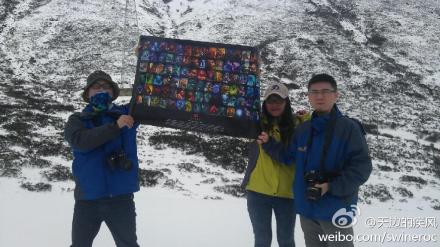 图1:赴藏玩家在雪山上高举《DOTA2》海报