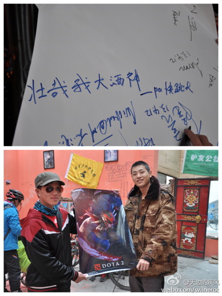 从成都到雅安、二郎山、康定、折多山直至抵达理塘,《DOTA2》的身影随着疾风的前行已经被烙印在了多个地方。从疾风在微薄及其他几大社区更新的旅途日记中,似乎可以看出疾风在启程之前就应该有所准备,一路上他不断的在通过《DOTA2》海报签名、留影等活动让更多人认识和了解《DOTA2》。从这些细节也可以看出,疾风这次行动绝对是真实情感的流露。