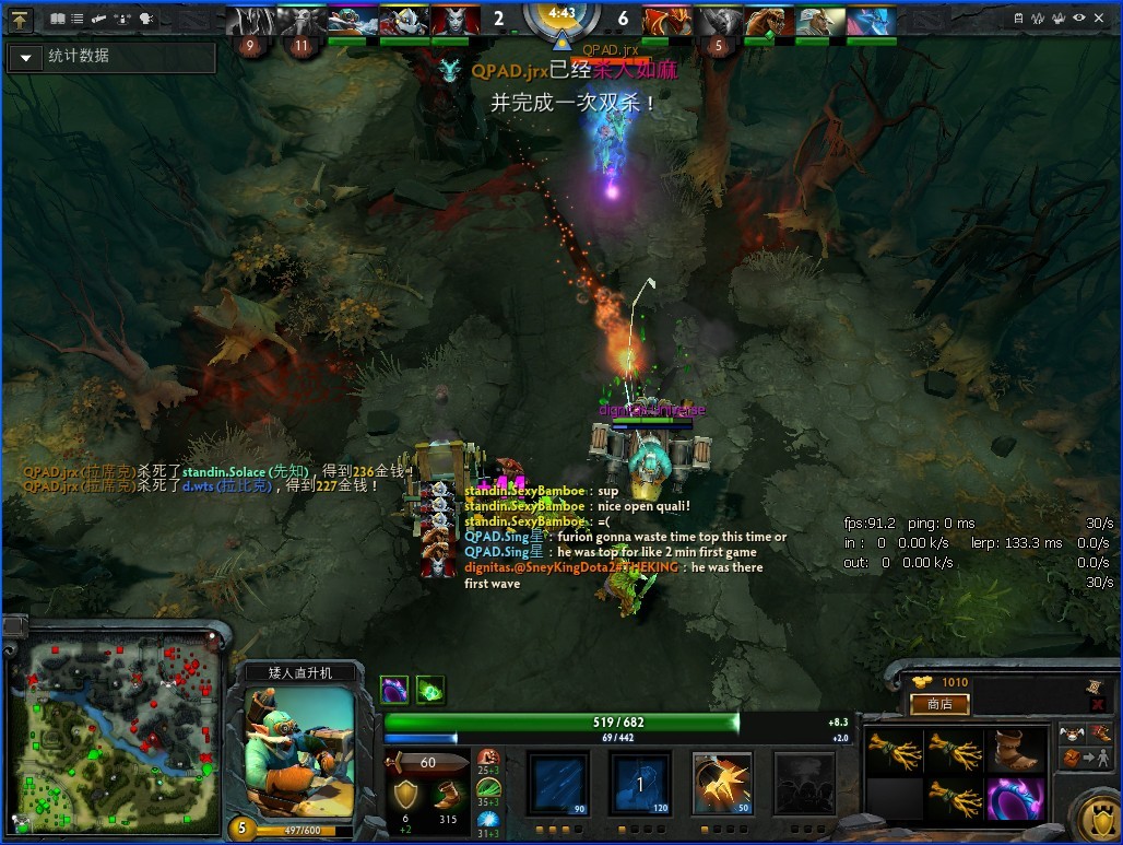 4分钟拉比克下路绕后配合飞机的先手E和传送过来的先知配合越塔强杀了猛犸,而此时TP过来的老鹿是收割掉残血逃跑的先知和拉比克。