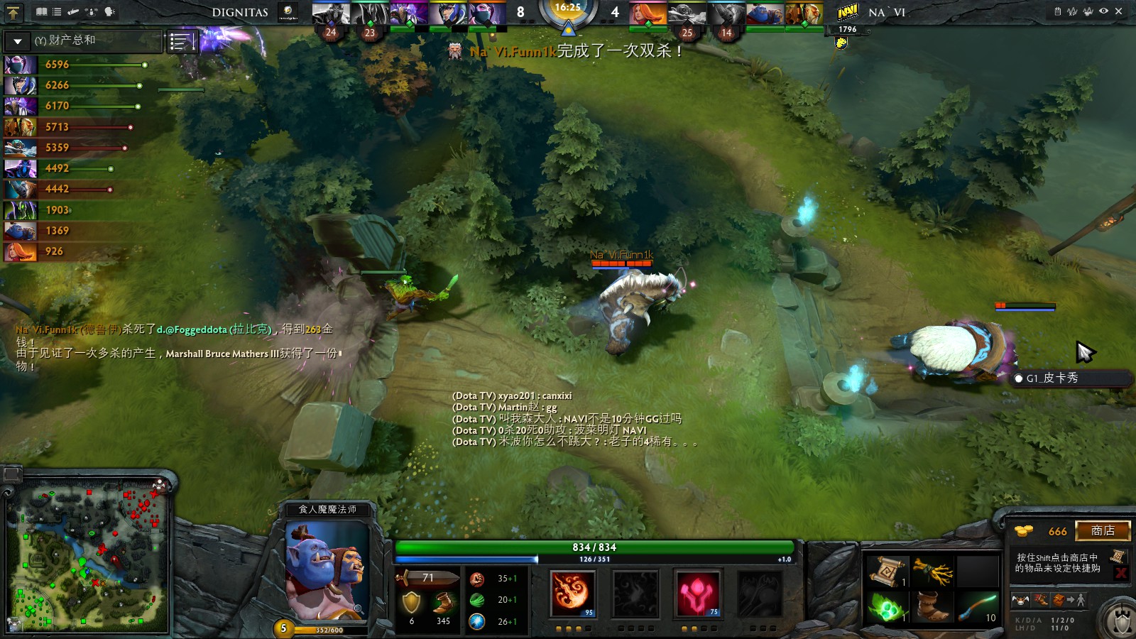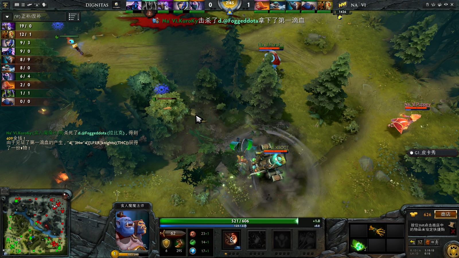 16分钟Navi中路团战小亏莉娜飞机猛犸相继阵亡而此时的德鲁伊是切入后排收掉了残血的谜团和拉比克。