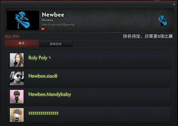 DOTA2社区职业战队资料中Newbee战队的成员今日出现变化,如上图所示: