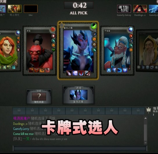 《DOTA2》的英雄选择界面也有了很大变化,不再是原作中复杂的酒馆形式,而是简单清晰的卡牌和网格选择模式。卡牌模式能查看到单独英雄的更多信息,而网格模式则更加直观的汇聚了所有英雄,两种方式算是各有千秋。