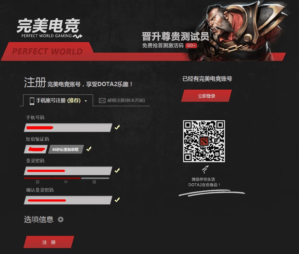 完美电竞账号的注册流程:注册Dota2账号-激活国服Dota2-下载Dota2客户端