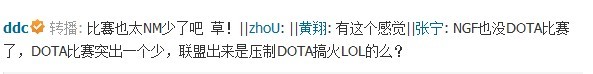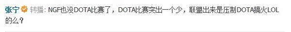 近日,知名电竞赛事NGF公布比赛项目,因为没有DOTA2,xiao8在微博抱怨联盟的出现让DOTA(含DOTA2)的比赛越来越少,开始质疑ACE联盟的作为,得到各职业选手的响应,包括zhou,Zippo,ddc等人纷纷赞同8导的言论。