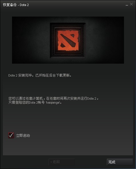 第6步:点击完成进入国服DOTA2界面。重要提示:如果下载要求重新下载3GB客户端请重新安装游戏即可解决。