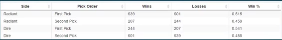 在6.85中,近卫路人的胜率比天灾高出了10个百分点,所以在6.86中冰蛙想方设法的砍近卫,结果如何?下图中可以看见职业比赛中:近卫1选胜率为51%,天灾1选胜率为54%,近卫2选胜率为46%,天灾2选胜率为49%。2个结论:1选>2选,天灾>近卫。同时在6.86的所有职业比赛中,75%的比赛是天灾2选,这说明绝大对数的职业选手认为天灾的优势更胜于1选带来的优势。