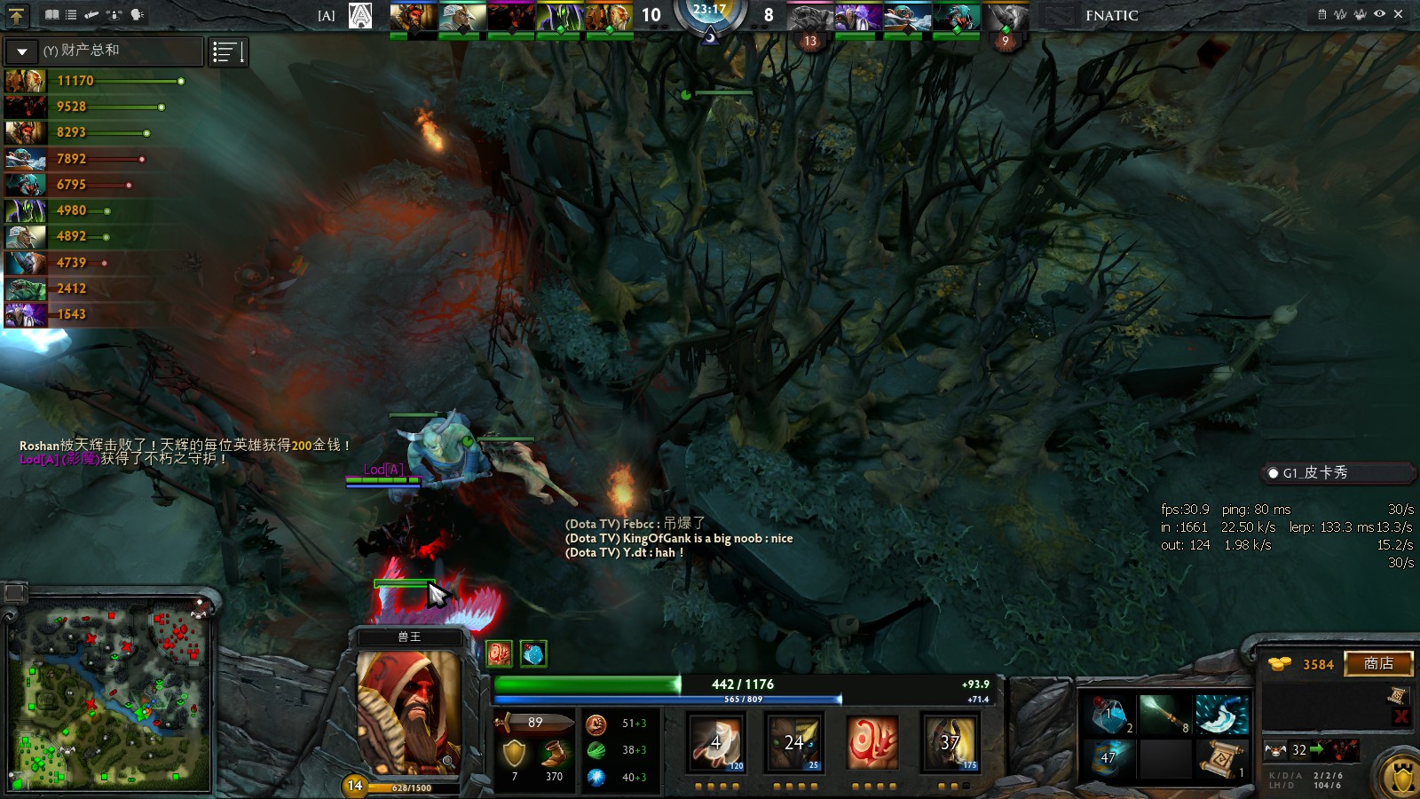 7分钟利用阵容优势的Fnatic是先手到大招配合是是直接秒掉了兽王和陈。