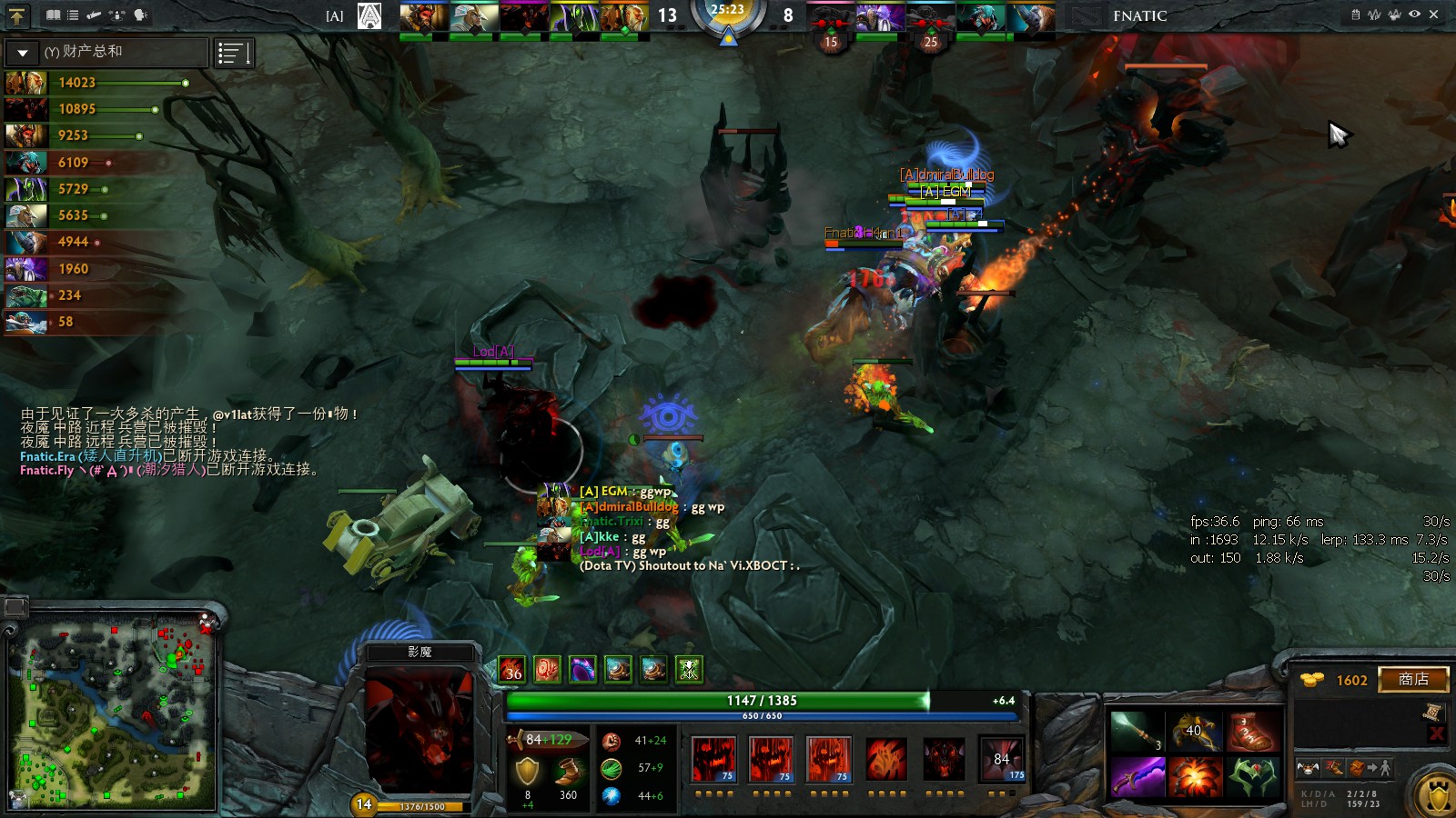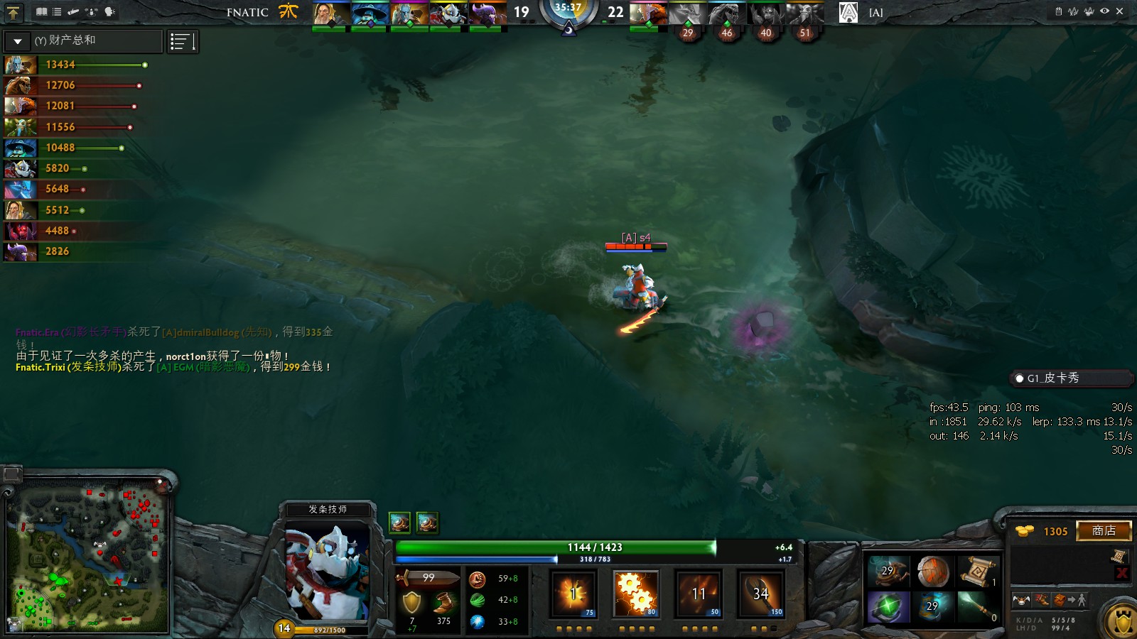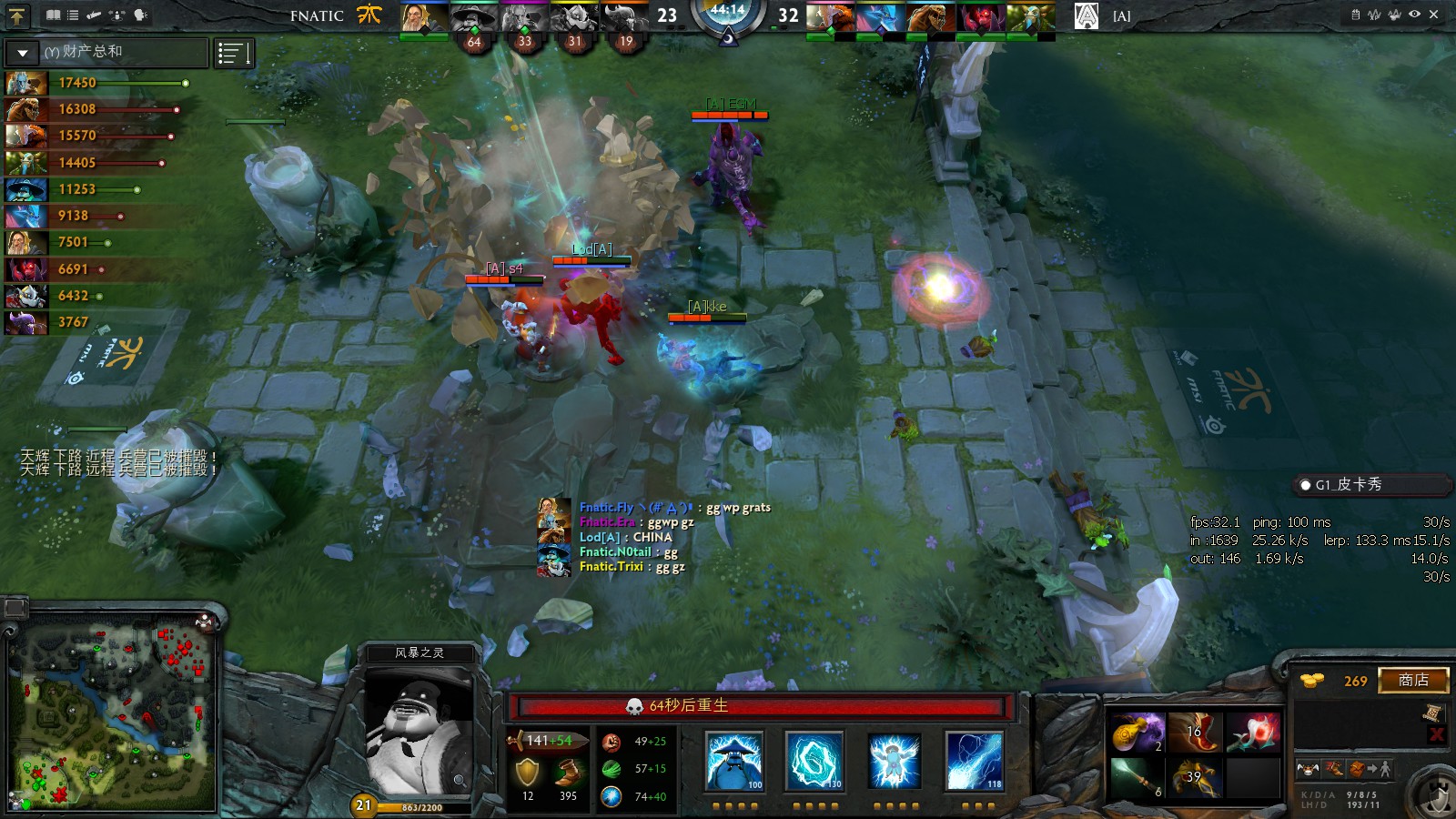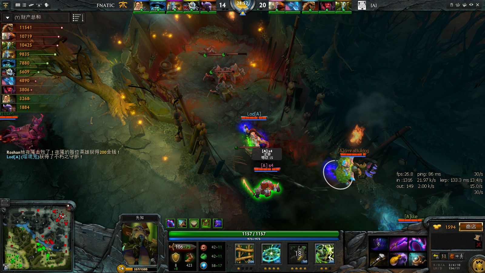 20分钟双方5人河道处开团,天辉位置很差再次被猛犸大招大到多人。影魔开启BKB反打是收掉了猛犸和飞机而自己也阵亡了。