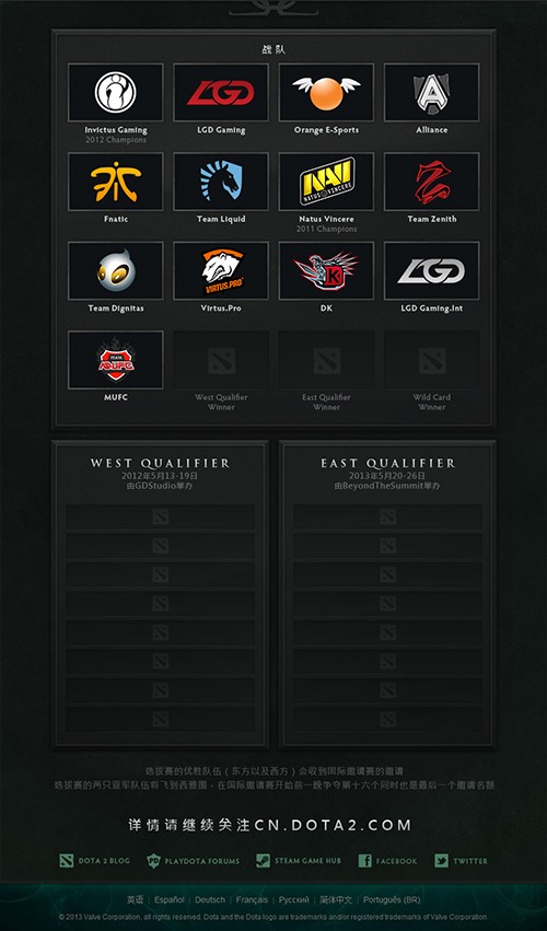 iG战队作为卫冕冠军是第一支收到邀请的战队(新闻回顾),受邀参加TI3的战队第二批名单也在4月27日进行了公布(新闻回顾)。昨日也公布了第三批名单(新闻回顾),今天最后2个名额的队伍已经产生,分别是