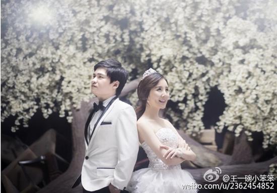 他穿着之前做伴郎的西装而我借了阿苏的婚纱一起拍了几张照片。