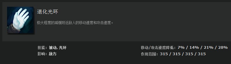 粘人流的核心技能自然便是退化光环了(俗称蛋疼光环..),315的范围不大,也就是说要实现第一时间的贴身很重要。而28%的双减速基本能够实现被OK跟上了就很难甩掉(当然还要配合后续的装备..)