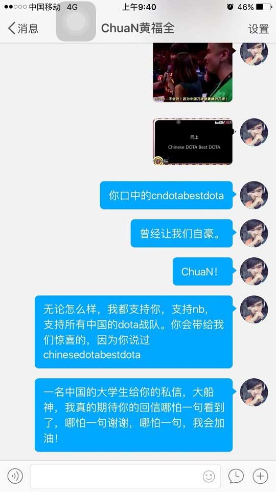 NB震中杯失利以后 水友给ChuaN的私信