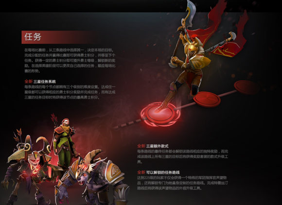 满载各式专属功能和奖赏,2016年国际邀请赛勇士令状前来为Dota的夏季保驾护航,让特级锦标赛的混战安然过渡到西雅图的巅峰对决。勇士令状玩家可以通过完成任务、赢得预测、解锁社区目标或购买勇士令状等级捆绑包来提升勇士等级,获得额外的不朽宝藏和其他奖励。