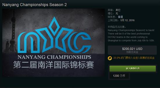 由杭州科宜文化传媒有限公司主办的第二届南洋DOTA2国际锦标赛NanYang DOTA2 Championships(简称:南洋杯NYC)将于2016年初夏正式启动,总决赛日期定为7月6日至7月10日。届时,来自世界各地的八支顶尖DOTA2豪门战队将齐聚上海,争夺20万美金的超高奖池和冠军荣耀!