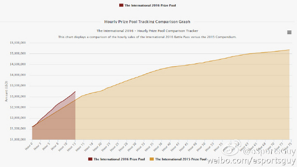 昨天晚上完美的充值出现问题,哪怕贴心的完美为保护水友们的双手果断的进行一波熔断,热情无可匹敌的Dotaer剁手的强烈意愿拦都拦不住,去国际服Steam购买也要入手小红本。就Ti6和Ti5的曲线对比,首日奖金的增长有一个明显的抬头。