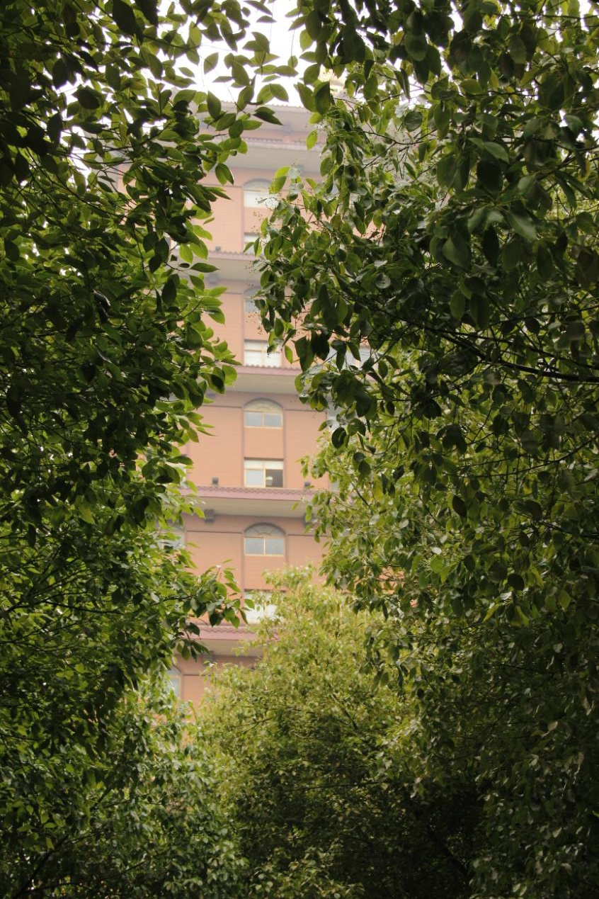 环绕在酒店周围的,是各种“华西村式”的景观,颇为独特。酒店大门左侧是“幸福园”,内有多栋塔楼,远远望去,像一座座镇妖宝塔般矗立,掩映在绿树之间。走近一看,这些十来层高的塔楼竟都是办公场所,有的是村民的体检中心,有的是江苏省的干部培训基地,还有的则是宾馆。脑补了一下,去这里体检应该会很安心,就算生病,也有仙丹可以药到病除。