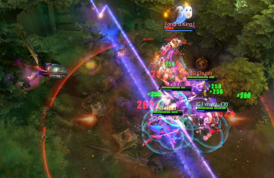 18分钟,iG开雾抓人,但是被TongFu的真眼尽收眼底,不过由于飞机位置不是很理想,导致队友支援稍慢,最后团战打成了4换2,人头比20:12,iG扳回2个人头。